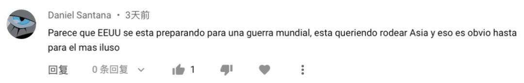 西班牙語網(wǎng)友丹尼爾:“美國正在籌備一場世界大戰(zhàn),企圖圍堵亞洲,這已是昭然若揭。”