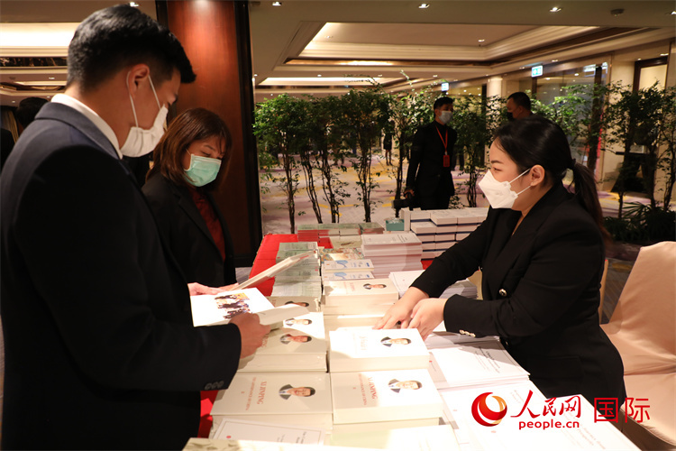 | 出席招待會(huì)的泰方代表正在翻閱《習(xí)近平談治國(guó)理政》泰文版。人民網(wǎng)記者 趙益普攝 |