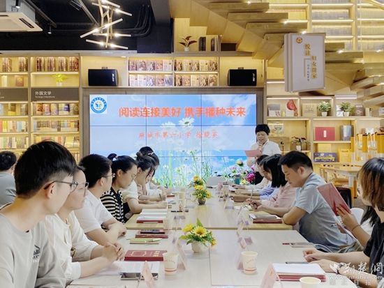 讀書(shū)會(huì)現(xiàn)場(chǎng),麻城市第六小學(xué)黨委副書(shū)記、全國(guó)TCL希望工程燭光獎(jiǎng)引領(lǐng)獎(jiǎng)獲得者徐能英老師就《閱讀連接美好 攜手播種未來(lái)》這一課題作了經(jīng)驗(yàn)交流,她針對(duì)學(xué)生的身心特點(diǎn),并結(jié)合教學(xué)自身規(guī)律,創(chuàng)新閱讀教學(xué)方法,通過(guò)班級(jí)圖書(shū)角建設(shè)、經(jīng)典誦讀、作詩(shī)比賽、暑期游學(xué)等方式,引導(dǎo)學(xué)生形成正確的閱讀動(dòng)機(jī),激發(fā)讀書(shū)的樂(lè)趣,教給學(xué)生讀書(shū)的方法,培養(yǎng)良好的讀書(shū)習(xí)慣,提升學(xué)生的文化底蘊(yùn),營(yíng)造濃厚的學(xué)習(xí)氛圍。