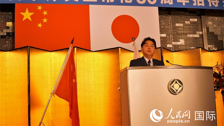 9月29日,日本外相林芳正在紀念活動上致辭。人民網記者 吳穎攝