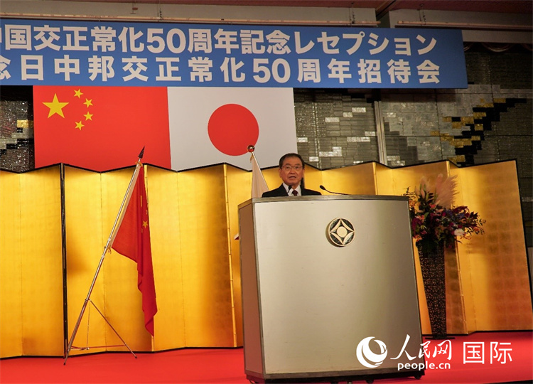 孔鉉佑在致辭中向為推動實現(xiàn)邦交正常化及50年來關心支持中日關系發(fā)展的日本各界友人致以誠摯敬意和由衷感謝,表示今天兩國領導人互致賀電,表達了積極發(fā)展中日關系的共同意愿,為雙方指明了下步努力的目標和方向。近段時間中日雙方官民并舉,密集舉辦了一系列邦交正?;?0周年紀念活動,形成了對話交流不斷升溫的積極勢頭。期待雙方充分抓住50周年契機,重溫邦交正?;跣?,堅定和平友好信念,共同開創(chuàng)新時代中日關系的嶄新前景。