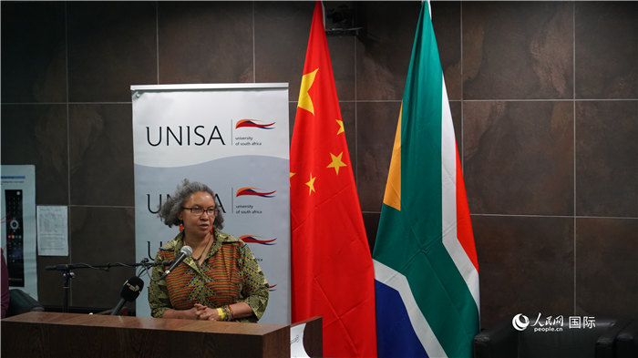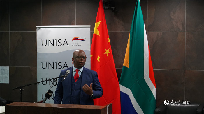 約翰內(nèi)斯堡大學(xué)非中研究中心主任孟大為發(fā)表致辭。人民網(wǎng) 張茜攝