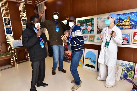 2022年10月11日,外國記者們到訪一家中醫(yī)院并體驗(yàn)中醫(yī)療法。邁克爾·奧格伯德攝
