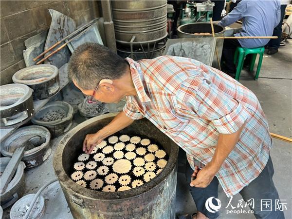 社區(qū)居民在制作創(chuàng)新后的傳統(tǒng)特色小吃番石榴甜品。記者 孫廣勇攝