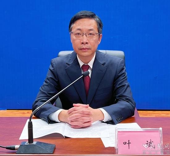 鄂州市水利和湖泊局局長、市河湖長制辦公室主任葉斌就記者提問進(jìn)行回答。金康 攝