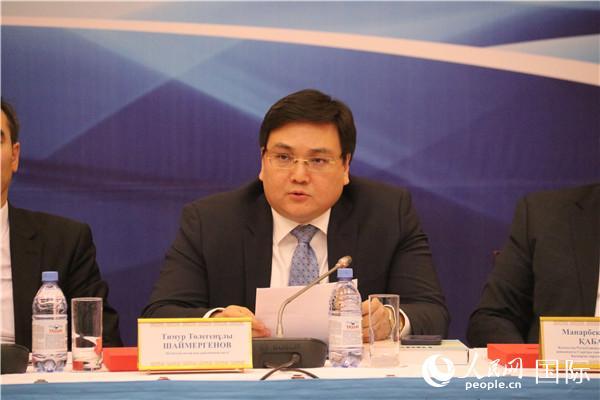 《中國(guó)—哈薩克斯坦:睦鄰友好與互利合作三十年》主創(chuàng)團(tuán)隊(duì)代表鐵木爾·沙伊梅爾格諾夫發(fā)言。人民網(wǎng)記者 周翰博攝