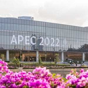 在新聞中心,各路記者已忙碌起來,大屏幕直播著高官會和部長會的畫面。毗鄰新聞中心的展示區(qū)聚集了來自亞太經(jīng)合組織經(jīng)濟體的知名企業(yè),“TikTok”展臺頗受歡迎。