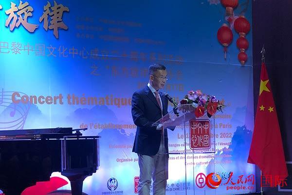 巴黎中國文化中心主任佘明遠(yuǎn)致辭。人民網(wǎng)記者 劉玲玲攝