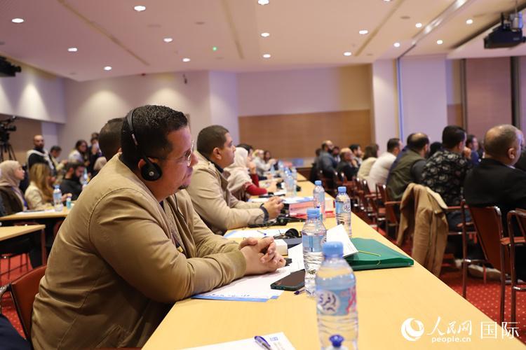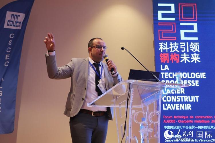 | 當(dāng)?shù)貙<蚁蚺c會(huì)嘉賓介紹阿爾及利亞鋼構(gòu)技術(shù)應(yīng)用情況。 人民網(wǎng)記者 王傳寶攝 |