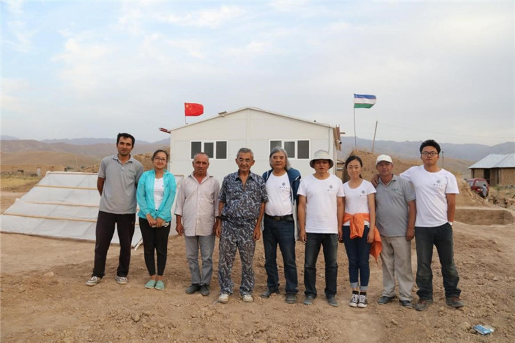 2016年撒扎干遺址保護大棚外,中烏考古隊員合影。王新建團隊供圖