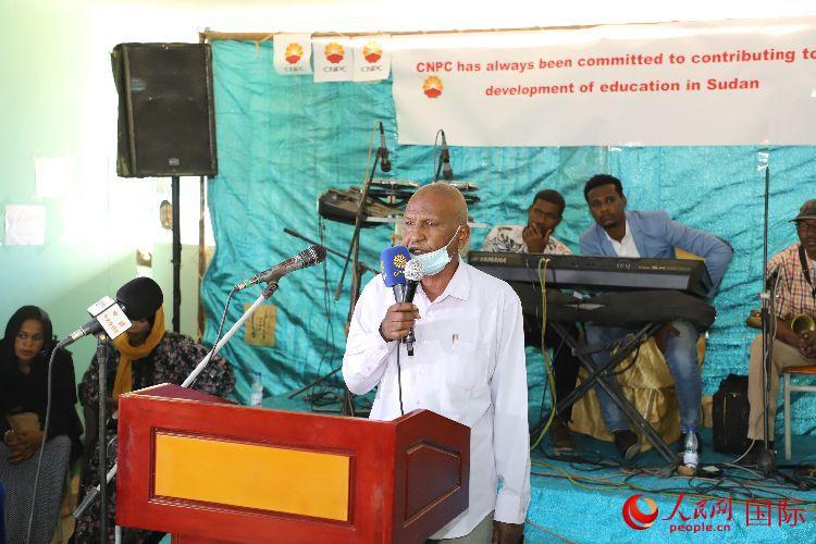| 恩圖曼教育局局長阿卜杜拉致辭。人民網(wǎng)記者 蘇航攝 |