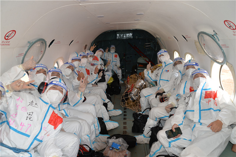 | 分隊(duì)官兵在直升機(jī)內(nèi)合影。直升機(jī)分隊(duì)供圖 |