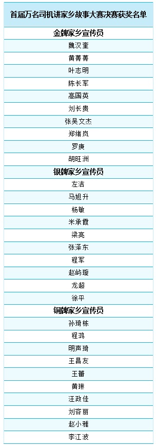 評委對決賽選手給予高度評價,“荊楚大地文化璀璨,人杰地靈,司機是連接荊楚大地所有物理空間和精神空間的重要的載體。30位司機,30張名片給我們講了30個故事。有講述百年黨史的紅色故事,有展現(xiàn)家鄉(xiāng)人文景觀的綠色故事,有歌唱家鄉(xiāng)發(fā)展的金色故事。他們是家鄉(xiāng)故事最好講述者,是地方文化最佳的傳播人。他們用司機的方式講述湖北故事、中國故事?!?/p>