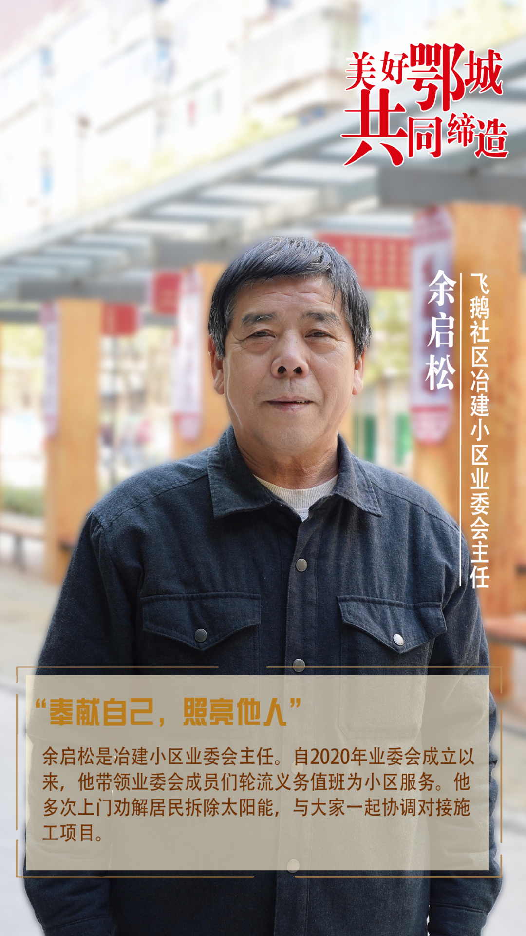 余啟松是冶建小區(qū)業(yè)委會主任。自2020年業(yè)委會成立以來,他帶領業(yè)委會成員們輪流義務值班為小區(qū)服務。他多次上門勸解居民拆除太陽能,與大家一起協(xié)調對接施工項目。