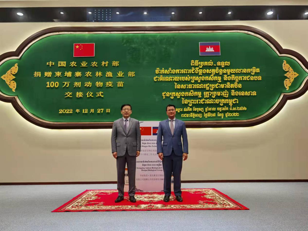 人民網(wǎng)曼谷12月28日電 (記者趙益普)12月27日上午,中國農(nóng)業(yè)農(nóng)村部向柬埔寨政府捐贈(zèng)了100萬劑動(dòng)物疫苗,包括50萬劑??谔阋咭呙绾?0萬劑用于治療牛結(jié)節(jié)性皮膚病的山羊痘疫苗。這是繼2019年底中國政府首次捐贈(zèng)柬埔寨20萬劑動(dòng)物疫苗以來的第二次捐贈(zèng)。
