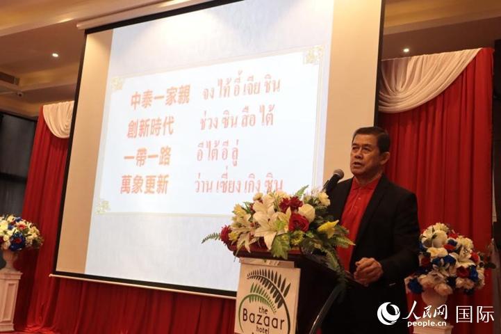 泰國前副總理、泰中友好協(xié)會會長功·塔帕朗詩發(fā)表主題演講。人民網(wǎng)記者李百加攝