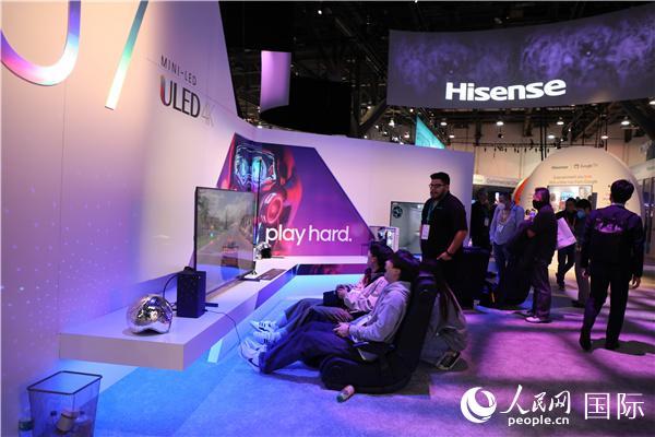 在2023年美國消費(fèi)電子展上,人們在中國企業(yè)展廳體驗新產(chǎn)品。 人民網(wǎng)記者 李志偉攝