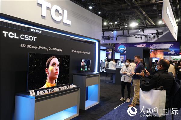 在2023年美國消費(fèi)電子展上,人們駐足觀看TCL推出的全球首款65英寸8K印刷OLED顯示器。 人民網(wǎng)記者 李志偉攝