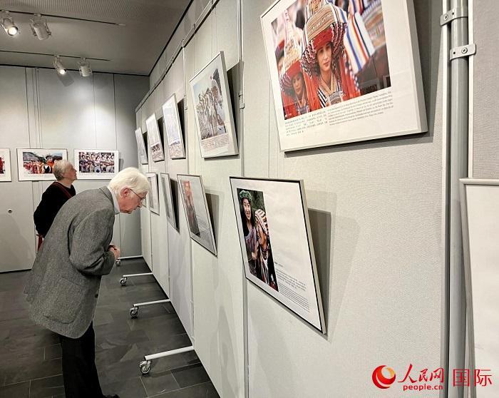 | 德國(guó)民眾參觀《民族盛裝》圖片展。人民網(wǎng)記者 張慧中攝 |