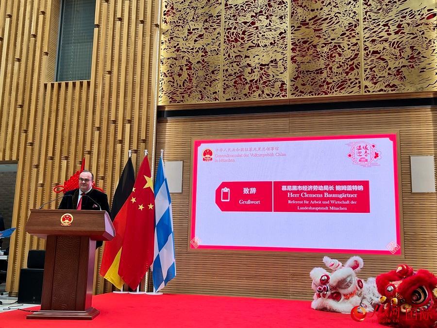 慕尼黑市經(jīng)濟(jì)勞動(dòng)局局長鮑姆蓋特納代表市政府向領(lǐng)區(qū)華僑華人致以新春祝福,表示慕尼黑市愿在新的一年同中方加強(qiáng)交流,著眼長遠(yuǎn),推動(dòng)雙方人員往來和務(wù)實(shí)合作再上新臺(tái)階。