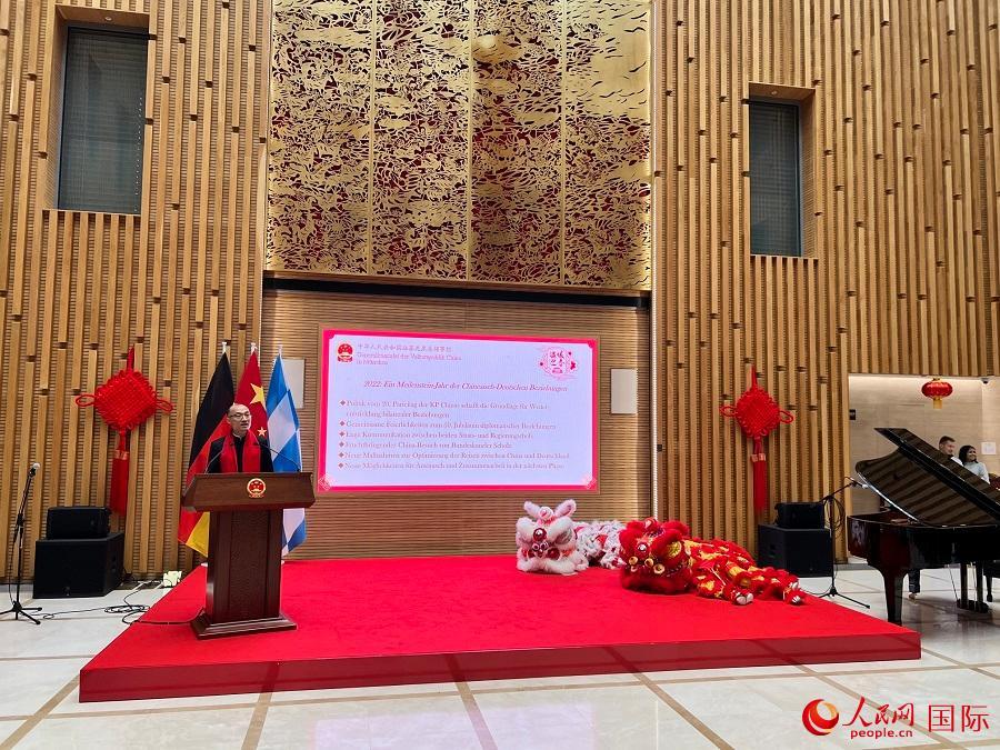 巴伐利亞州內(nèi)政部國務(wù)秘書基爾希納代表巴州政府向招待會(huì)發(fā)來視頻賀辭,盛贊德中建交50周年來雙邊關(guān)系發(fā)展成果并表示,巴州歷來高度重視發(fā)展對(duì)華關(guān)系,愿在新的一年繼續(xù)深化對(duì)華友好務(wù)實(shí)合作,促進(jìn)雙方關(guān)系走深走實(shí)。