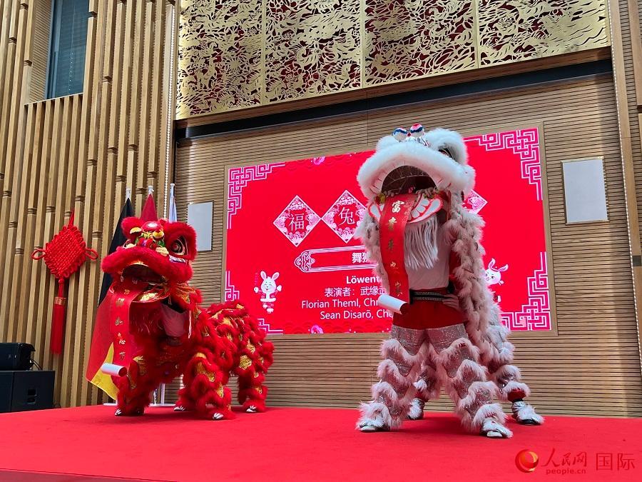 | 慕尼黑當(dāng)?shù)匚湫g(shù)學(xué)校表演舞獅。人民網(wǎng)記者 李強(qiáng)攝 |