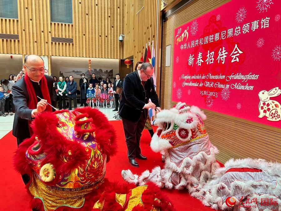 致辭環(huán)節(jié)后,童德發(fā)總領(lǐng)事和鮑姆蓋特納共同為中國祥獅點(diǎn)睛,共祝世界和平美好,中德、中巴州友誼地久天長。