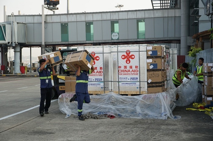 中國援緬新一批疫苗運(yùn)抵仰光 。人民網(wǎng)記者 李秉新攝