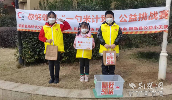 12日,由陽新縣新時代文明實踐中心、團縣委和縣義工協(xié)會公益小天使共同締造“你好,鄰居”一勺米活動在山上綠洲小區(qū)開展,10組親子家庭敲開鄰居門,募集一勺米。一個個友善微笑,一聲聲親切問候,足以拉近鄰里間的距離,也讓公益小天使親歷體驗一次“百家米”傳承文化美德。