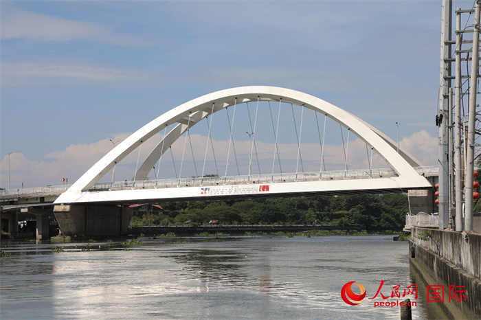 由中國政府援建的菲律賓比農(nóng)多-王城大橋橫跨馬尼拉城區(qū)的帕西格河,連接著兩岸的歷史文化街區(qū)。圖為2022年10月中旬拍攝的比農(nóng)多-王城大橋。人民網(wǎng)記者 趙益普攝