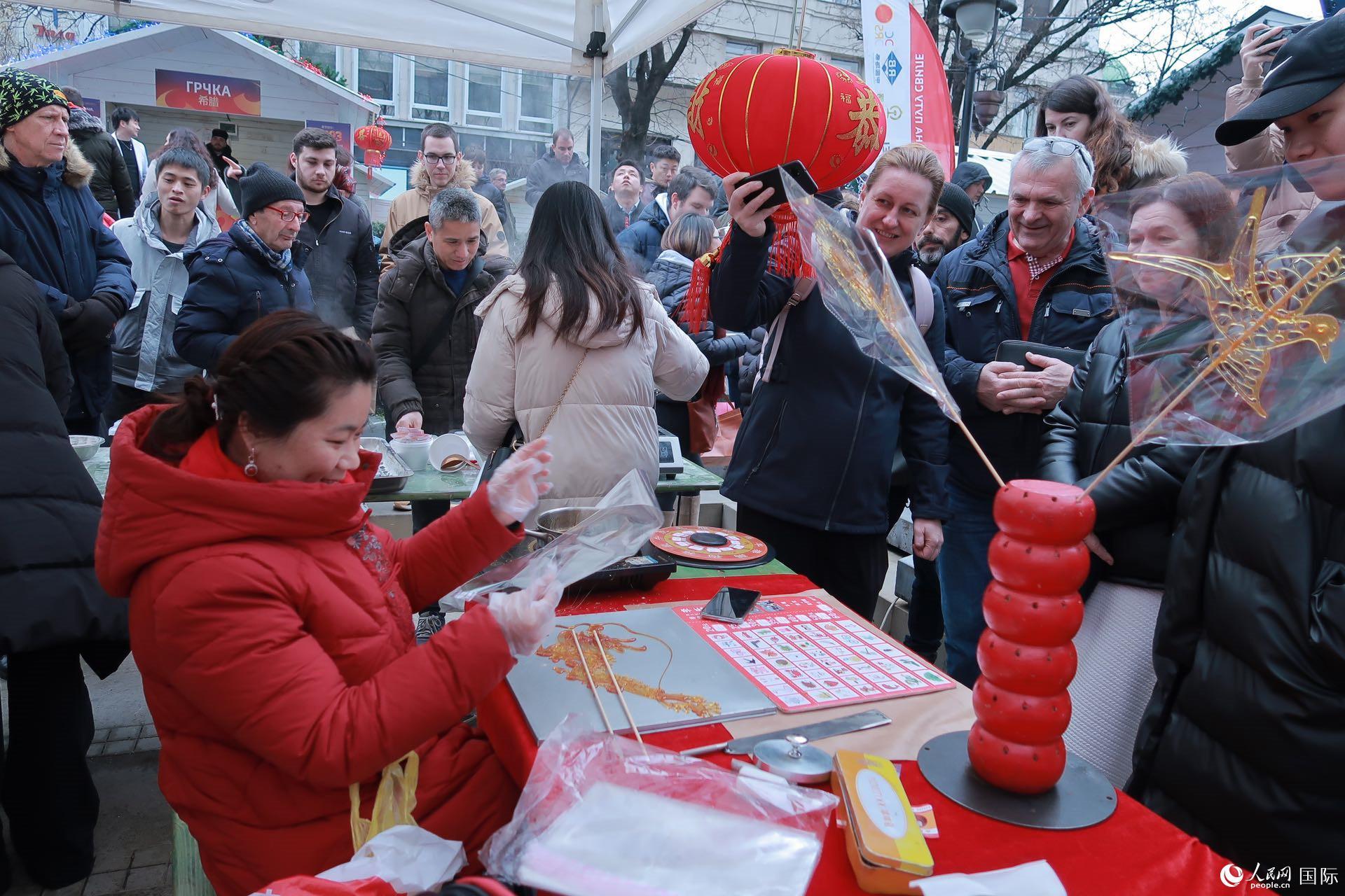 | 貝爾格萊德市民體驗(yàn)糖畫(huà)。貝爾格萊德中國(guó)文化中心供圖 |