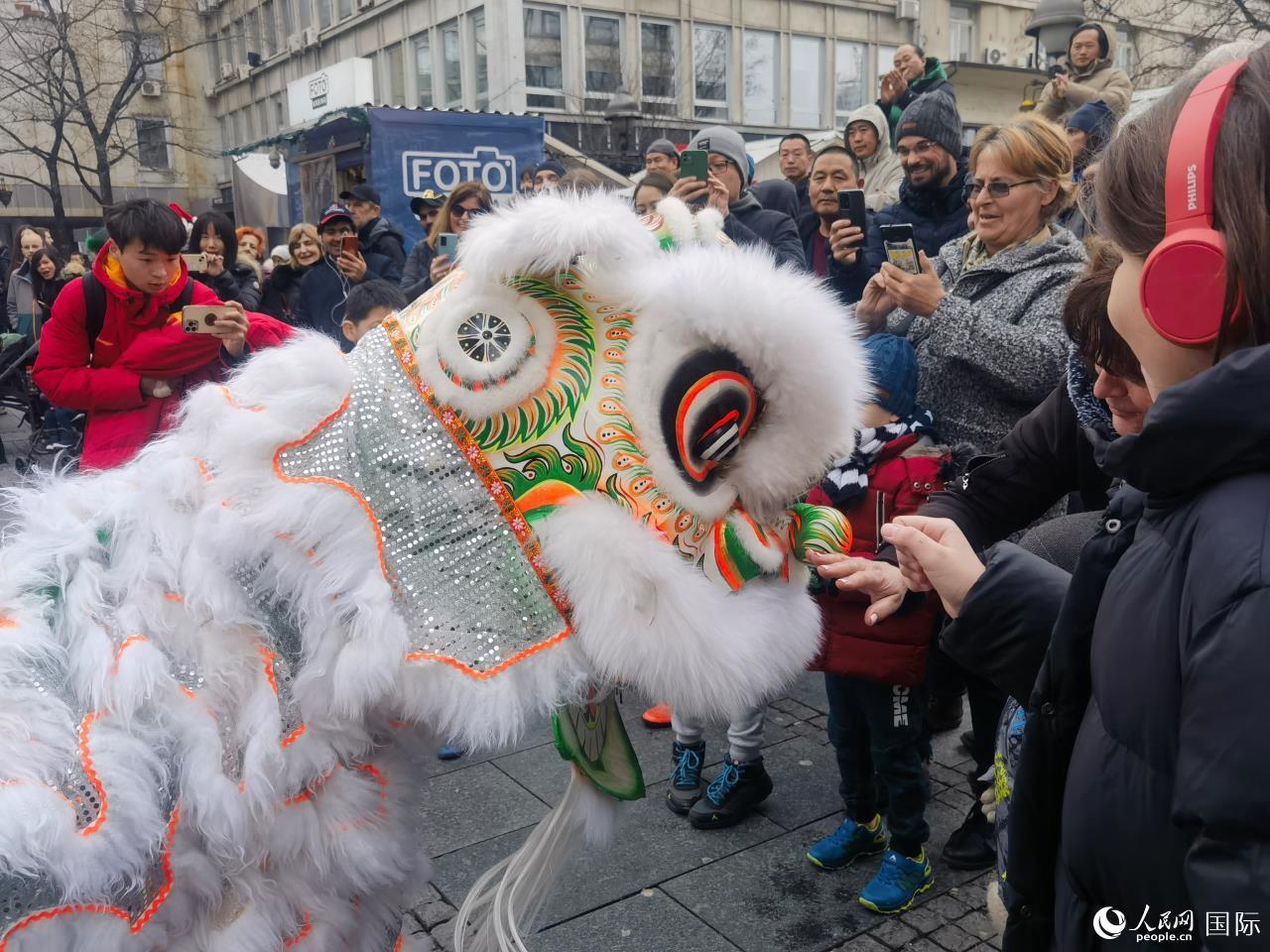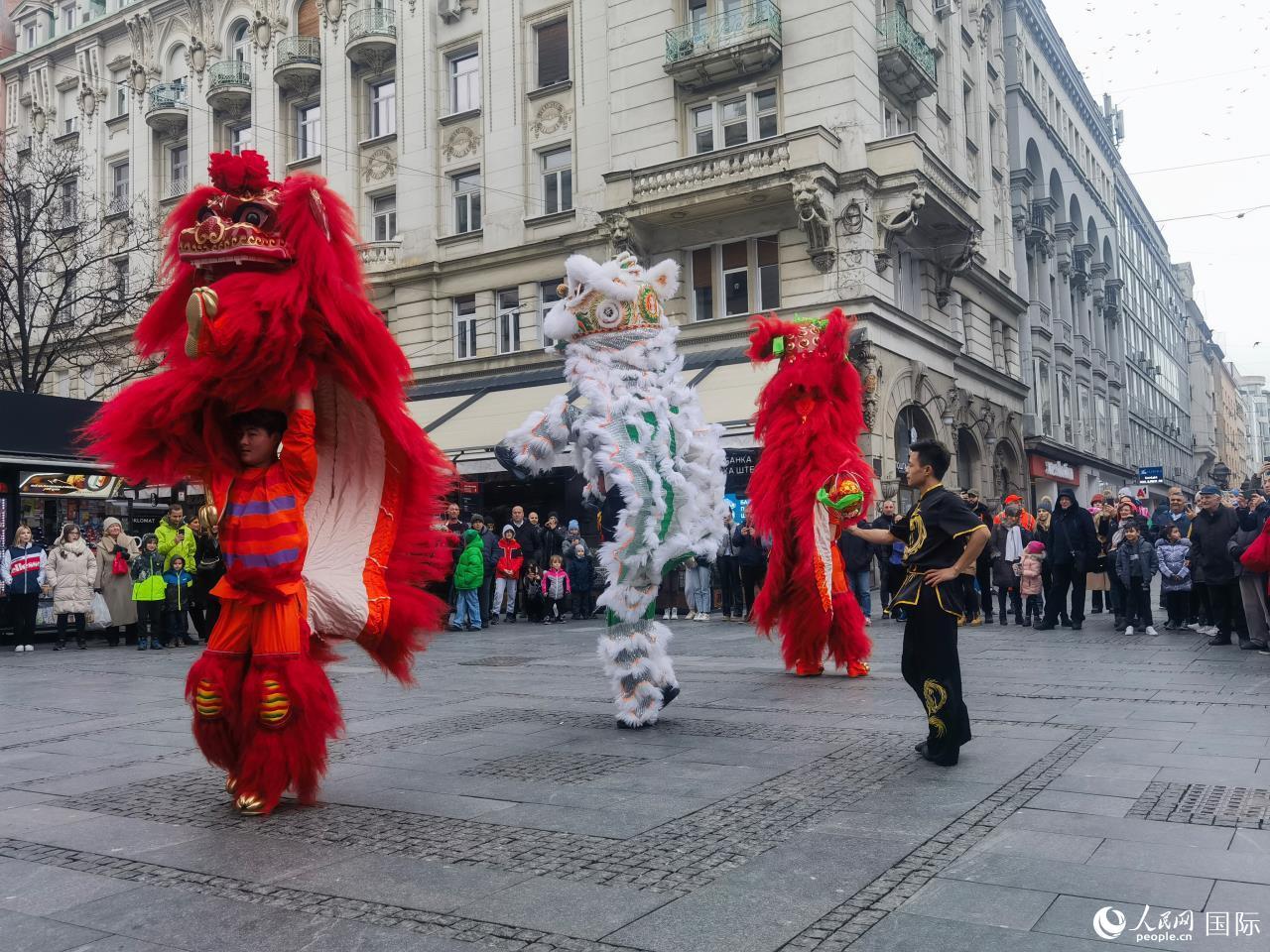 | 中國(guó)藝術(shù)家舉行舞獅表演。貝爾格萊德中國(guó)文化中心供圖 |