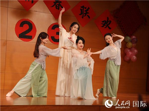 隨后,中美青年學(xué)生同臺表演,聯(lián)袂獻上精彩紛呈的文藝演出。在現(xiàn)場播放數(shù)十位來自美高校師生的新年祝福語后,一曲歡快的《春節(jié)序曲》拉開了演出的帷幕。中美學(xué)生表演了傳統(tǒng)舞蹈、現(xiàn)代舞、鋼琴演奏、快板等節(jié)目。在晚會的最后,4名中國學(xué)生演唱《我愛你中國》,贏得了現(xiàn)場熱烈掌聲。