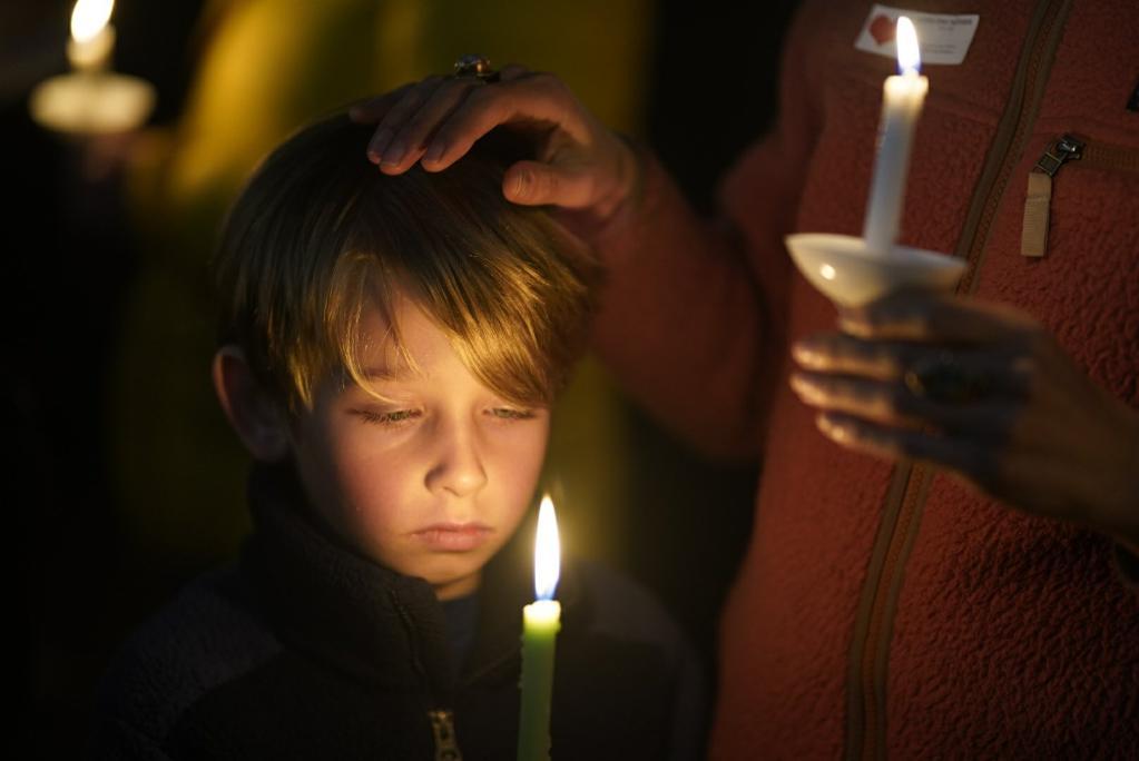 1月27日,一個(gè)男孩在美國加利福尼亞州半月灣市舉行的守夜活動(dòng)中哀悼槍擊事件遇難者。新華社記者吳曉凌攝