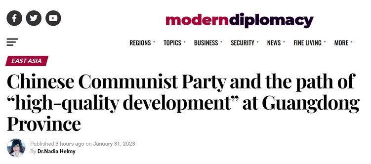 國(guó)際在線專稿:歐洲《現(xiàn)代外交》網(wǎng)站(ModernDiplomacy.eu)1月31日發(fā)表題為《中國(guó)共產(chǎn)黨與廣東省的“高質(zhì)量發(fā)展”之路》的署名評(píng)論文章,文章作者、埃及學(xué)者納迪亞·赫爾米(Dr. Nadia Helmy)在文中高度評(píng)價(jià)中國(guó)高質(zhì)量發(fā)展取得的豐碩成果。