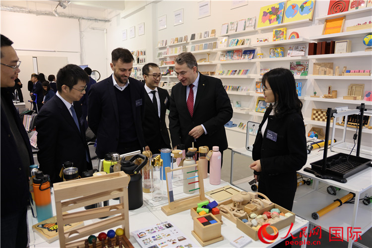來(lái)賓們?cè)趨⒂^展銷中心的展品。人民網(wǎng)記者 劉仲華攝