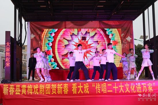 荊楚網(wǎng)(湖北日?qǐng)?bào)網(wǎng))訊(通訊員凌敏、程楚輝)2月2日,由蘄春縣委宣傳部、縣文化和旅游局、株林鎮(zhèn)人民政府聯(lián)合主辦的“我們的中國夢(mèng)文化進(jìn)萬家暨蘄春縣貫徹落實(shí)二十大精神+送戲下鄉(xiāng)”惠民文化演出走進(jìn)當(dāng)?shù)劓?zhèn)村一線,用黃梅戲表演唱等形式,把黨的二十大精神送到老百姓家門口,贏得群眾一片叫好聲。