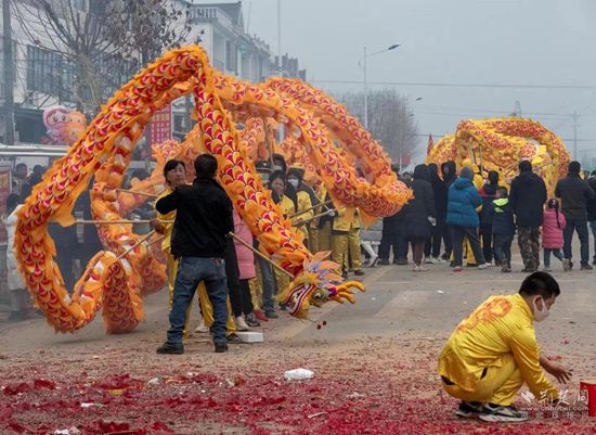荊楚網(wǎng)(湖北日?qǐng)?bào)網(wǎng))訊(通訊員 董劍橋 陳鈺)2月5日,蘄春縣金龍鬧元宵巡游活動(dòng)拉開序幕,由橫車鎮(zhèn)界嶺村民自發(fā)組織的三條舞龍隊(duì)伍敲鑼打鼓、踏歌起舞,整個(gè)小鎮(zhèn)人聲鼎沸、熱鬧非凡。