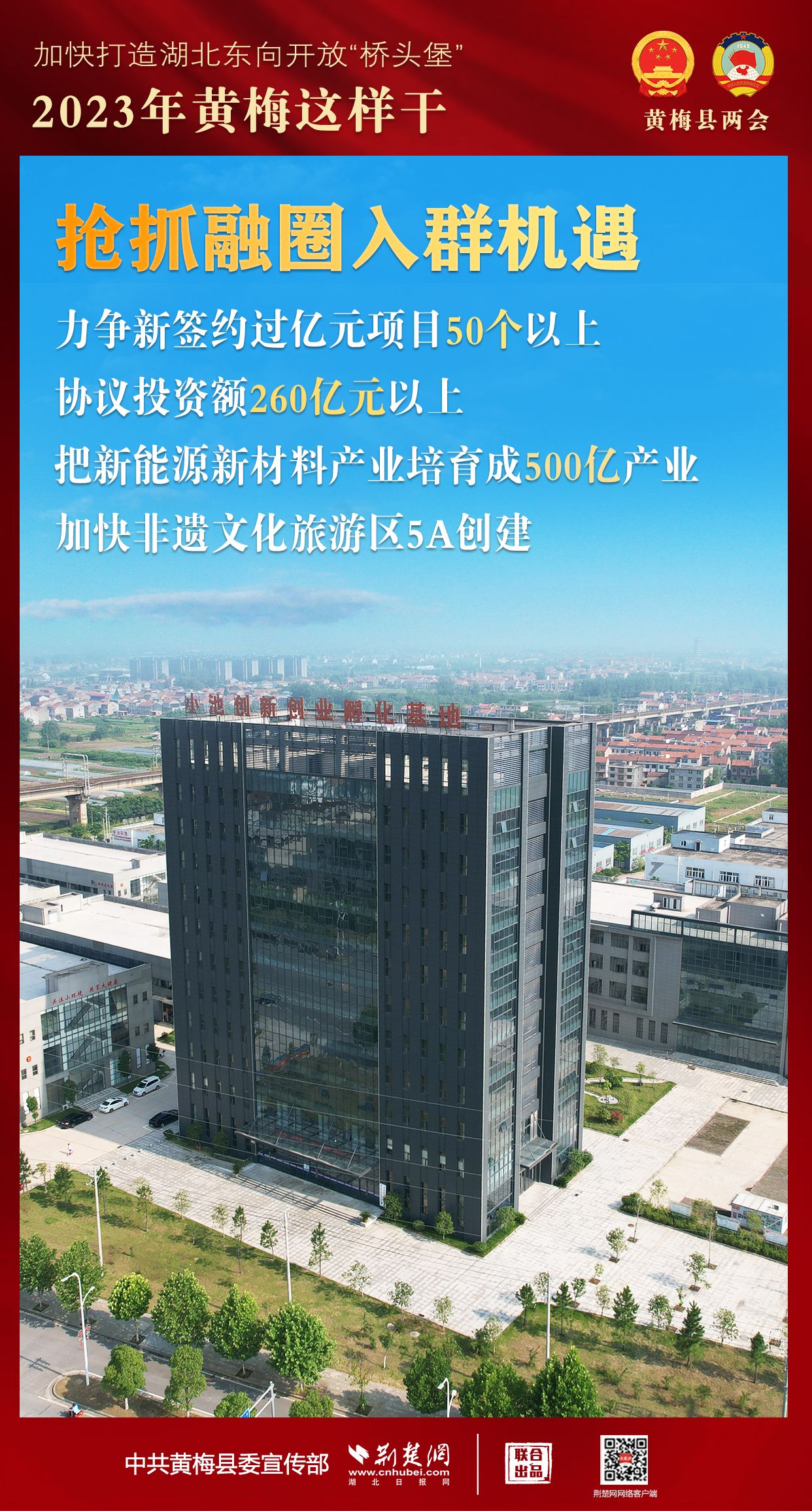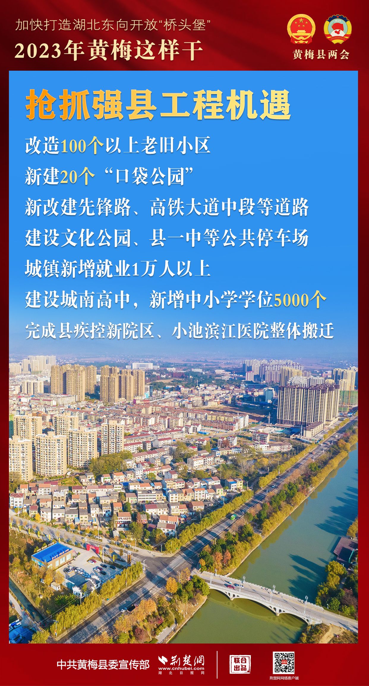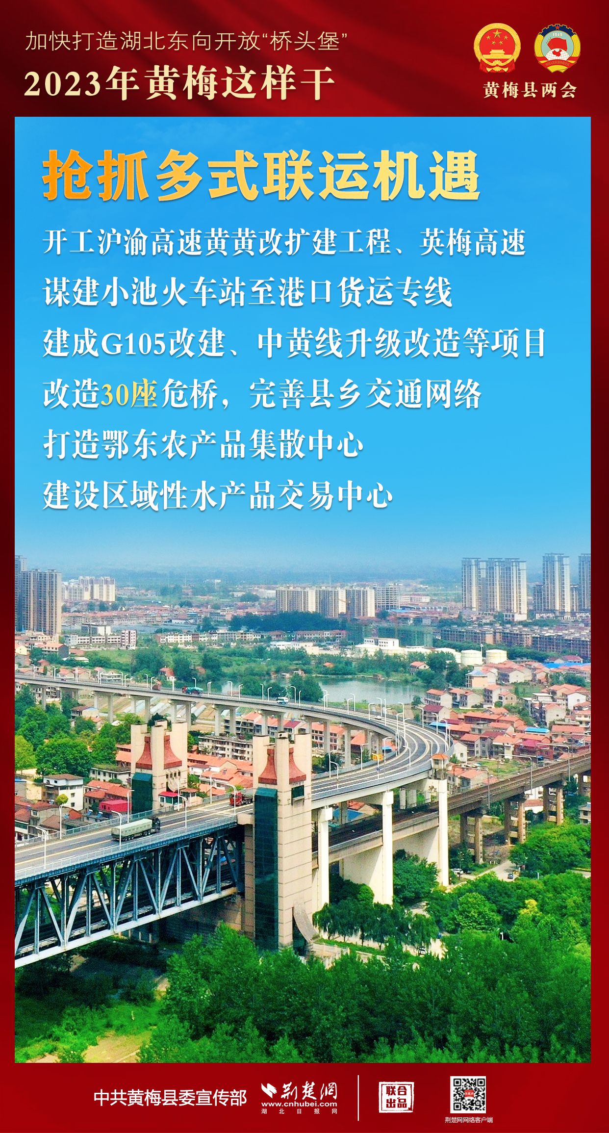 2023年,黃梅將搶抓六大機遇,提升六個能級,著力發(fā)展節(jié)點、旅游、樞紐、平臺“四大經(jīng)濟”,敢為實干,提速增效,全面向上,加快著力打造湖北東向開放“橋頭堡”。
