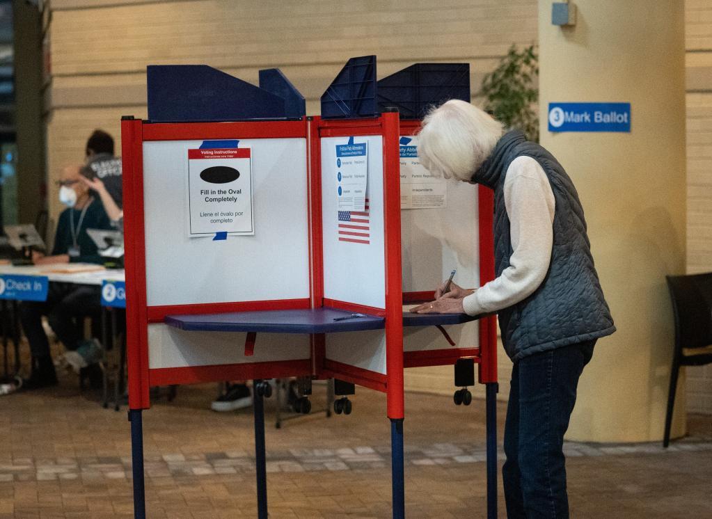 2022年11月8日,美國(guó)國(guó)會(huì)中期選舉在政治極化、社會(huì)撕裂、通貨膨脹“高燒不退”以及大多數(shù)人對(duì)國(guó)家走向不滿的背景下舉行。圖為選民在美國(guó)弗吉尼亞州阿靈頓的一處投票點(diǎn)參加中期選舉投票。新華社記者劉杰攝