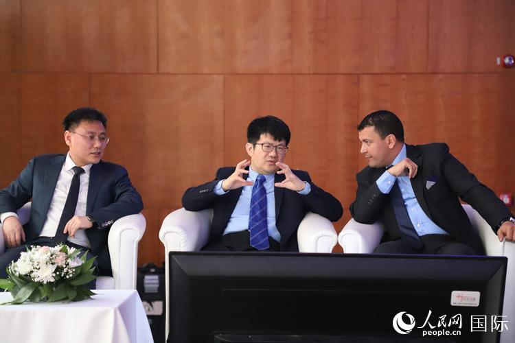 | 中國駐阿爾及利亞大使李健(中)與參加儀式代表交流。人民網(wǎng)記者 王傳寶攝 |