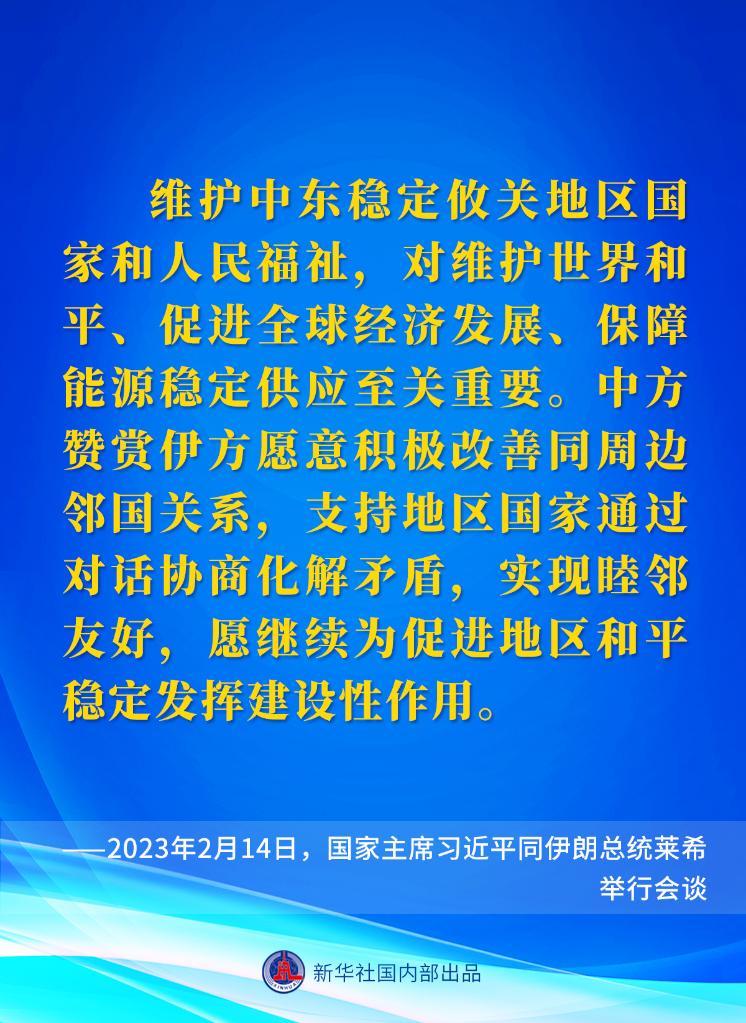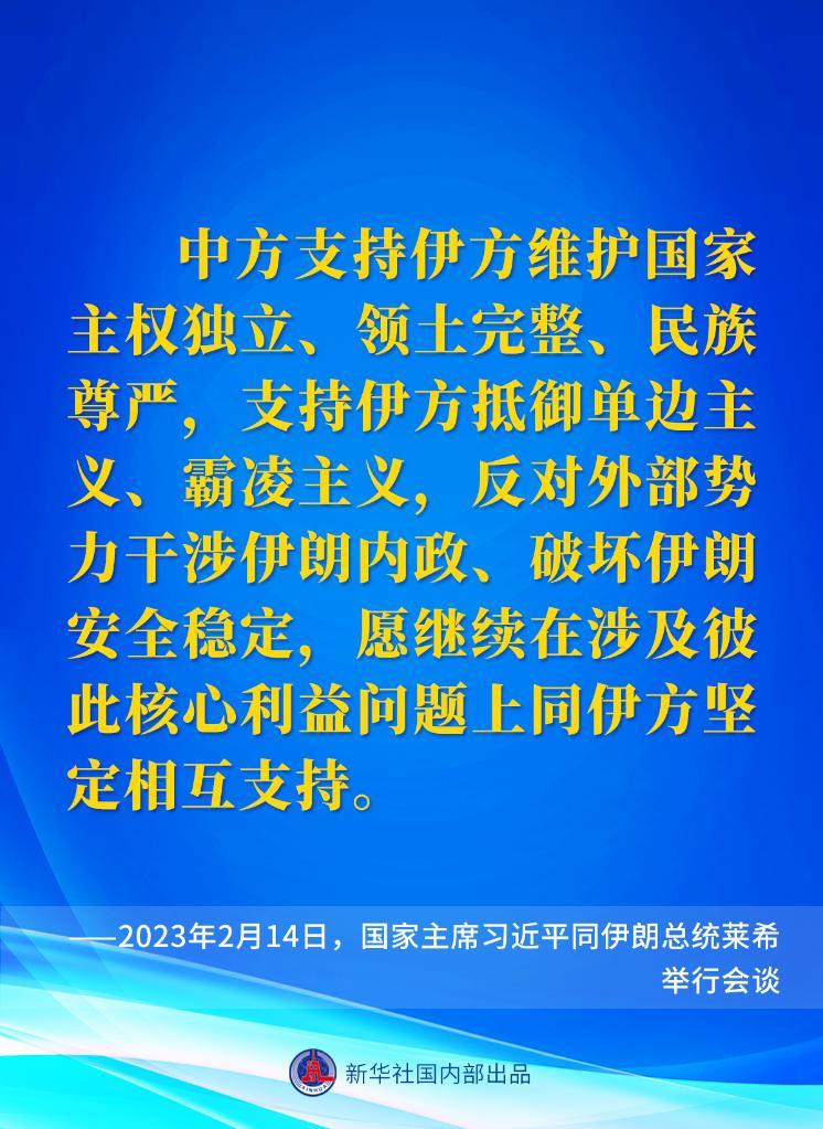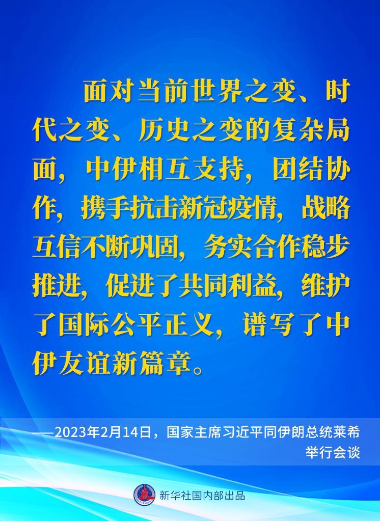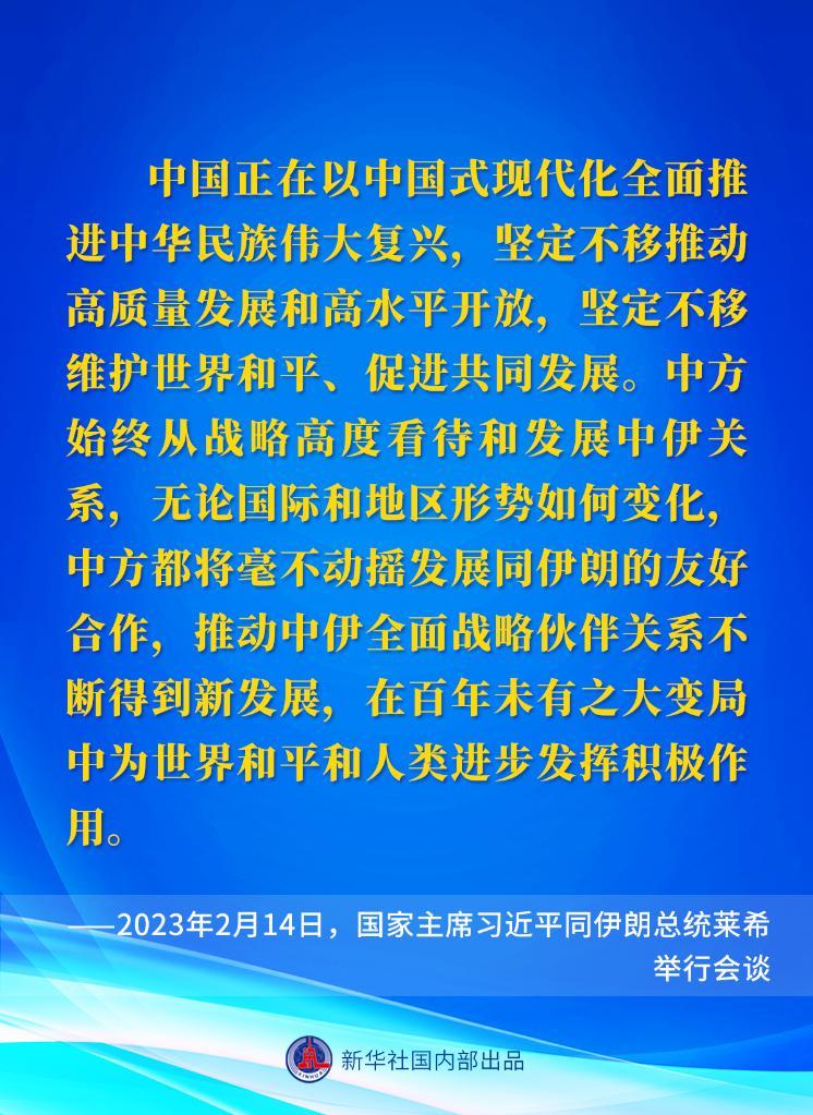 2月14日下午,國家主席習近平在人民大會堂同來華進行國事訪問的伊朗總統(tǒng)萊希舉行會談。一起來看習近平主席的談話要點。