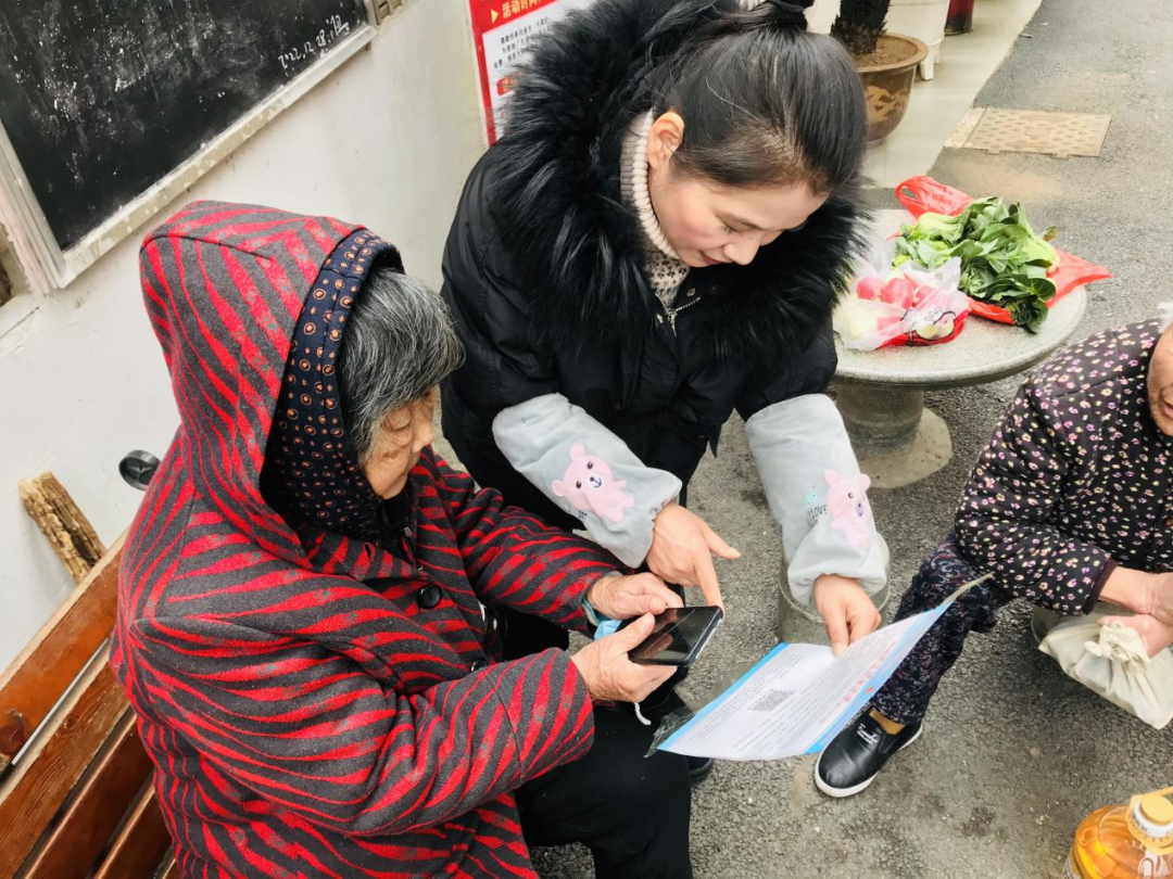 圖為西塞山區(qū)八泉街道和平街社區(qū)紀檢委員向群眾介紹“‘碼’上監(jiān)督馬上辦”二維碼