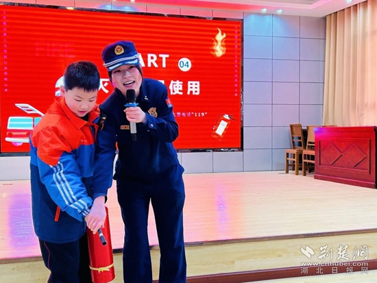 同時,大隊宣傳員向?qū)W生們講解各類消防器材裝備的用途和使用方法,“手把手”指導(dǎo)他們學(xué)習(xí)滅火器正確操作步驟和注意事項,學(xué)生們積極參與,現(xiàn)場氣氛熱烈?;顒咏Y(jié)束后,大隊宣傳員還為學(xué)生們發(fā)放《小學(xué)生消防安全教育讀本》。