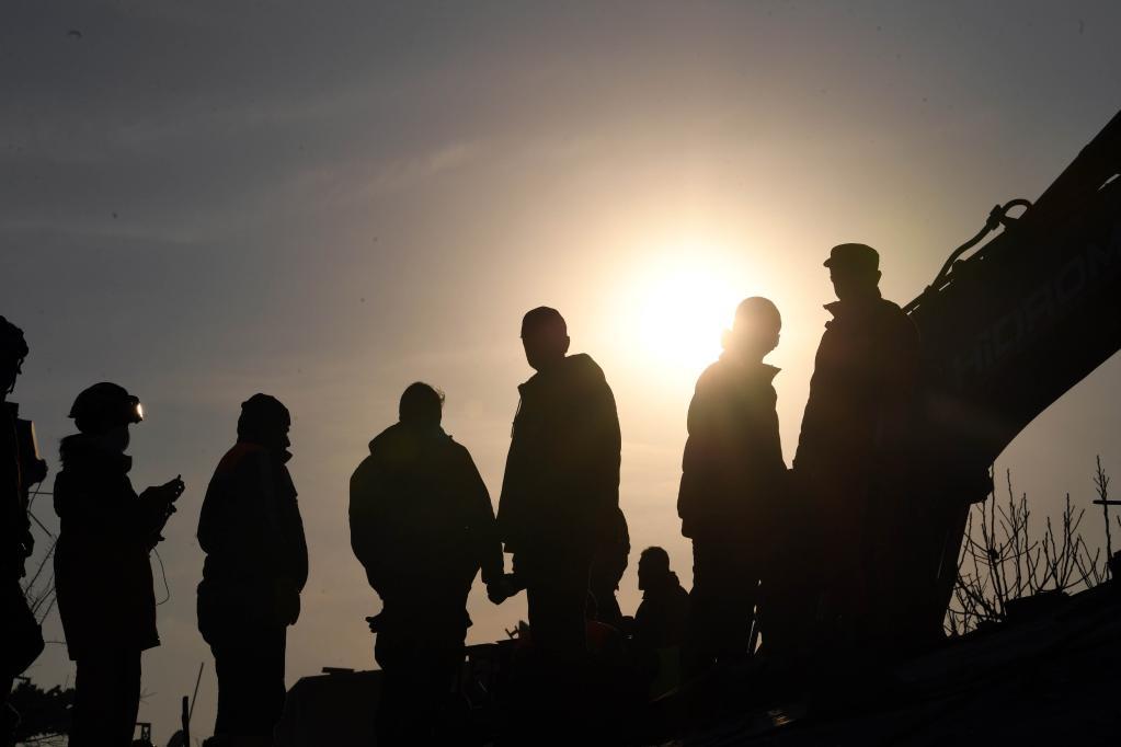 2月11日,救援人員在土耳其哈塔伊省安塔基亞市參與搜救。新華社記者沙達(dá)提攝