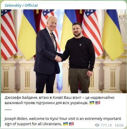 澤連斯基方面也證實了拜登抵達基輔的消息,并在其社交媒體官方賬號上發(fā)表與拜登的合影照片,并用烏、英雙語寫道:“約瑟夫·拜登,歡迎來到基輔!對所有烏克蘭人來說,您的到訪是一個極其重要的支持信號?!?/p>