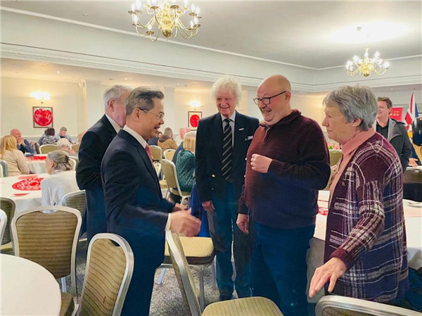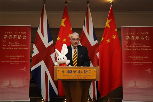 人民網(wǎng)格洛斯特2月20日電(周卓斌、郭錦標(biāo))2月19日,中國(guó)駐英國(guó)使館在英國(guó)格洛斯特郡為“里斯本丸”號(hào)船幸存者家屬及相關(guān)人士舉行新春招待會(huì),共同慶祝中國(guó)農(nóng)歷新年,體驗(yàn)中國(guó)傳統(tǒng)文化,緬懷1942年中國(guó)漁民英勇?tīng)I(yíng)救“里斯本丸”號(hào)船英軍戰(zhàn)俘的感人故事。“里斯本丸”號(hào)船幸存者丹尼斯·莫利之女丹妮絲·維尼、長(zhǎng)期致力于收集整理“里斯本丸”號(hào)營(yíng)救事件資料的英國(guó)退役少校費(fèi)恩祺以及當(dāng)時(shí)乘坐“里斯本丸”號(hào)船英軍戰(zhàn)俘家屬代表共150多人參加。