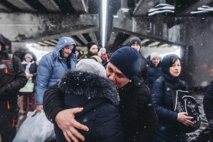 2022年3月8日,一對(duì)情侶在烏克蘭伊爾平告別。俄羅斯國防部當(dāng)天表示,俄軍自莫斯科時(shí)間3月9日10時(shí)起再次啟動(dòng)“安靜模式”,以保障從基輔、切爾尼戈夫、蘇梅、哈爾科夫和馬里烏波爾撤離平民的人道主義走廊。新華社發(fā)(迭戈·埃雷拉攝)