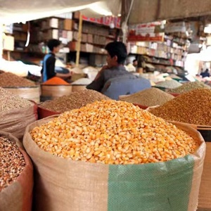 這是2022年6月29日在也門(mén)薩那拍攝的出售糧食的攤位。新華社發(fā)(穆罕默德·穆罕默德攝)