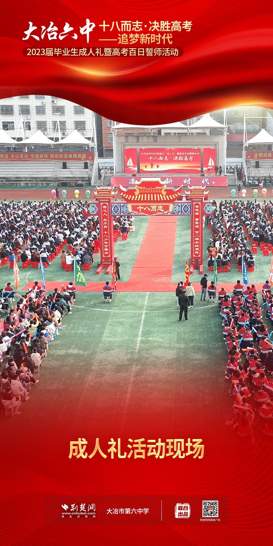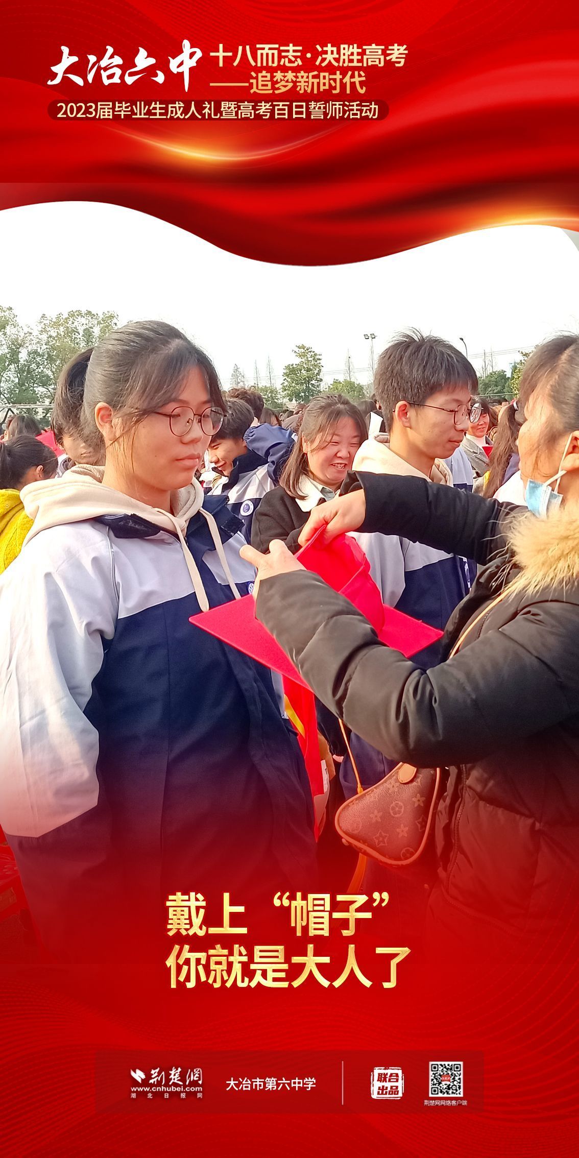 荊楚網(wǎng)(湖北日報網(wǎng))訊(記者 左乙辰 通訊員 吳江濤、任慧)撥穗正冠,禮成!2月25日,大冶市第六中學(xué)3600名學(xué)子和家長、老師共同見證該校1200名高三同學(xué)十八歲成人儀式,共赴六月的理想征程。